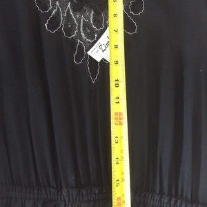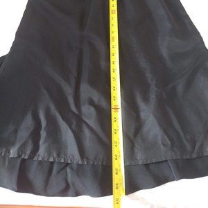 black 100% silk, fully lined A line fit/flare midi dress with elastic waist