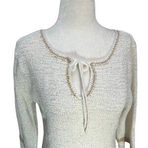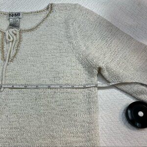 vintage 90's Nomi🎀Cotton Blend Beige Boho Sweater Tie Neckline Size M