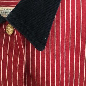 Vintage Ralph Lauren at his best. Denim with cord collar. Large. 22.5" bust/17" sleeve/20" shoulders/29.5" long.