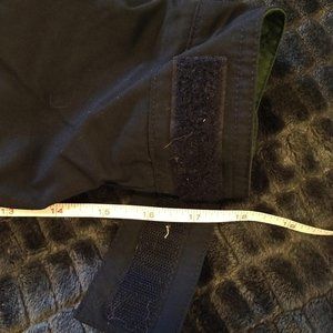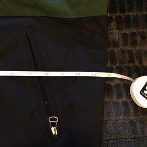 dual zip, snap placket closure, 3 zip pockets, velcro wrist closures, flip up collar with snap closure