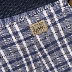 vintage 90s lee shorts plaid high rise made in usa pet 8 blue tartan check