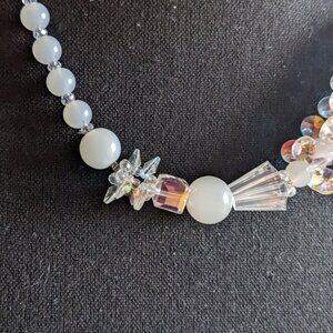 This is a vintage Aurora Borealis rhinestone and crystal bead necklace. You can use as is or take it apart and make something more awesome. The necklace is pre-owned and has some scratches and other signs of use. It's also missing some beads in the front middle as seen in pictures. Please feel free to make offers and bundle.