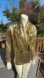 This garment is a vintage Marc Allan gold lamé wrap blouse from the 1980s. The top features a shimmering metallic liquid gold fabric and a wrap-style front with a collar. It has shoulder pads and a peplum-style hem, characteristic of the era. The blouse is often made from a blend of rayon and metallic thread, which gives it a lightweight feel and drape. 68% rayon 32% metal.