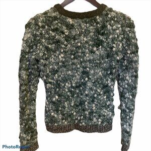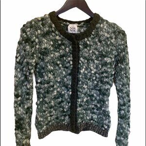 vintage Noa Noa Wool Boucle Green Cropped Knit Cardigan Sweater Size S