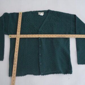 vintage Northern Traditions Hunter Green Knit Floral Beaded button-up Cardigan S