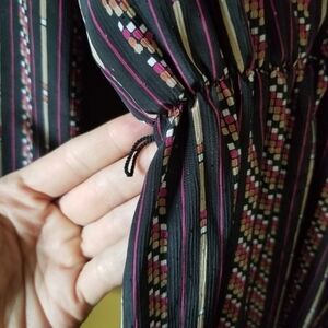 Vintage Orite Striped Dress. Long Sleeves, Button Cuffs and chest. Asymmetrical collar. Very of its era.