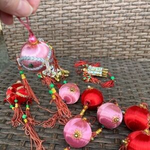 vintage Satin Wrapped Chinese New Year Style Lantern Ornaments Bulbs Holiday