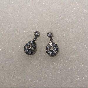 vintage Sterling & White Cz Stone Fancy Pear Shape Teardrop Dangle Studs .8”