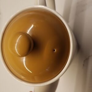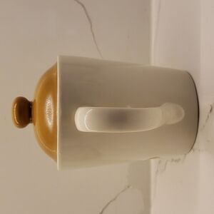 vintage Tim Horton's Coffee Tea Pot White Brown lid 5"h x 9"w