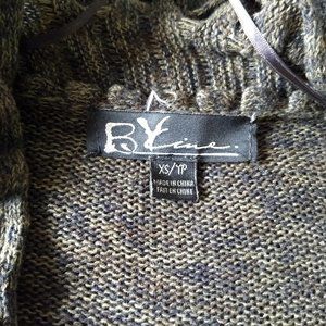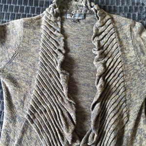 beautiful marled mottled olive/dark tan and black open waterfall cardigan with pleated ruffled collar