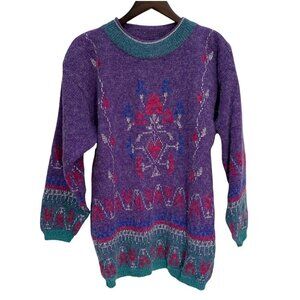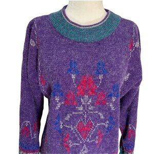vintage Y2K Chunky Sweater by Weekend Edition Purple Aztec Inspired Print