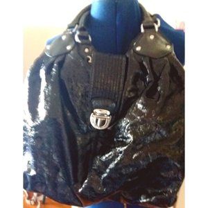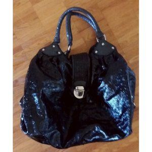 vintage Y2K ESPRIT black round hobo bucket 'lacquered' bag tote purse