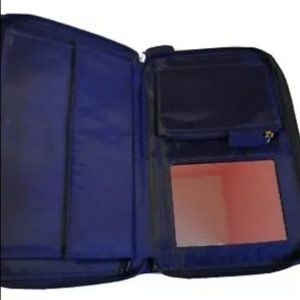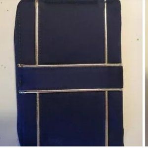 Authentic Yves saint laurent clutch. vintage, navy blue and gold lines. it has a mirror in the inside. has a lot of pockets to fit anything.