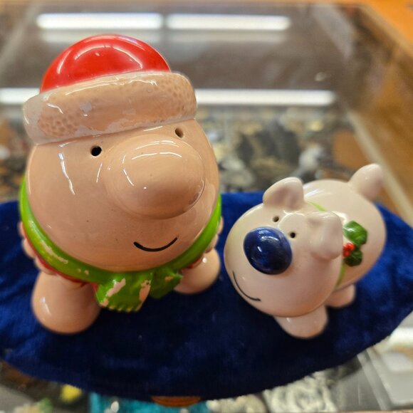 both have their original stoppers but do show their age with paint loss.. overall sweet set, very hard to find and in good overall shape. sold as is as shown