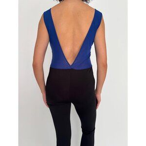 vintage blue fitted clubbing festival party backless mesh pant catsuit jumpsuit