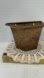 Elegant brass planter with floral design. Perfect for indoor or outdoor decor.