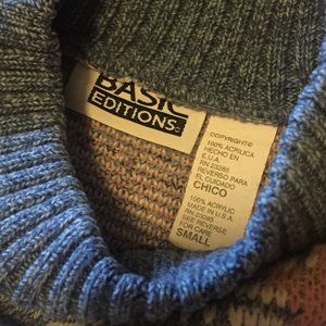 Adorable cat sweater! Blue and white plaid, pink flowers, and a mock turtleneck collar. Pattern on front and back! Very soft and comfortable.