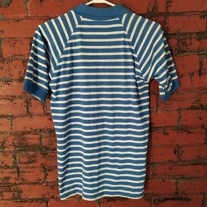vintage deadstock Court Club striped tennis polo in blue/ white. never worn, snaps in perfect shape, no signs of wear/ defects.