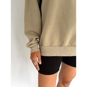 this is a funny and cheeky vintage pullover sweatshirt from the early 2000s featuring a blank frontside and a bold screen printed text on the back in blue and yellow that reads “if you can read this, please put me back on my horse!” (art credit: 2000 PSD inc). the long sleeved unisex sweater has a light brown body, a crew neckline, and it is ribbed at the neck, cuffs and bottom hem. the fabric is a worn-in cotton blend fabric (has been run through wash many times so the inner fabric is a bit more rigid than soft) and the sweater goes on with a pullover closure, and is unlined.