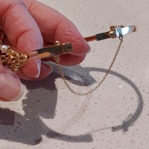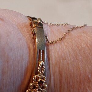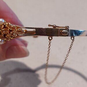 vintage garnet and pearl 14K oval hinged bangle bracelet