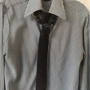 Pair our bias-cut striped shirt together with a BLACK matte satin men's tie in your next #OOTD (shown above) for feminine androgyny