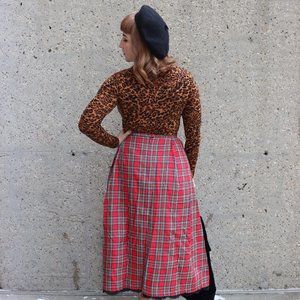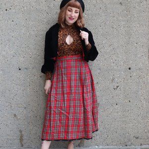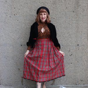 80s/90s taffeta a-line midi skirt in that classic red plaid we all love from Bianca