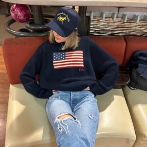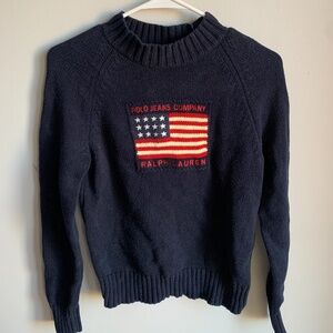 inconic vintage american flag ralph lauren mock neck sweater in navy- size sm. In great condition!