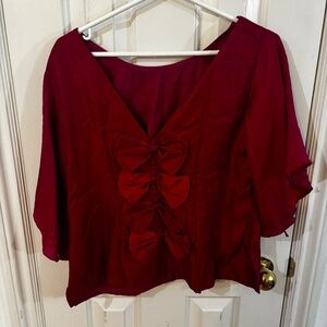 vintage shifting fabric blouse with bows on the back- duo chrome