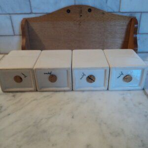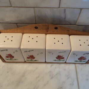 so sweet, singing birds vintage set of spices in the original wooden rack