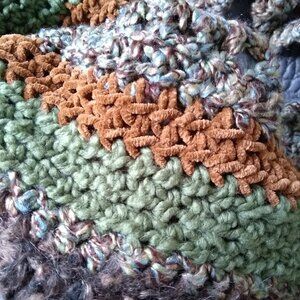 multicolor warm, soft, cozy mix of different yarns including chenille, and fuzzy