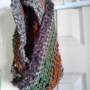 beautiful hand knit crocheted mixed yarn chunky infinity scarf
