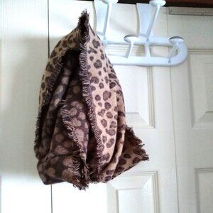beautiful knit infinity scarf with jacquard animal print pattern, cheetah or leopard