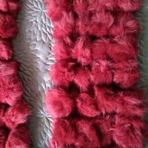 beautiful long rabbit fur pom pom scarf with fringe ends
