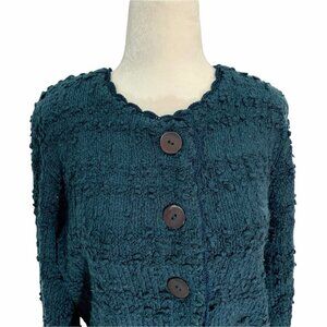 Gorgeous medium weight, multi textured sweater with large 4 black button closure