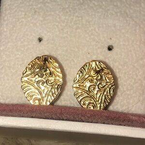 vtg 10k Yellow Gold & Faux Pearl Oval Stud Earrings Approx 14mm