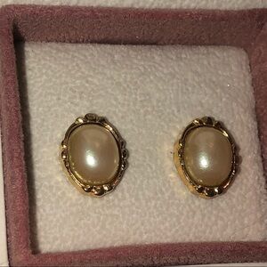 Gorgeous vintage 10k yellow gold Oval Shaped Faux Pearl earrings - I believe the pearls are made of glass.