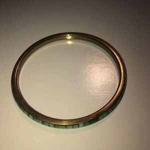 Vintage 1970s Brass and dyed green bone inlay bangle,