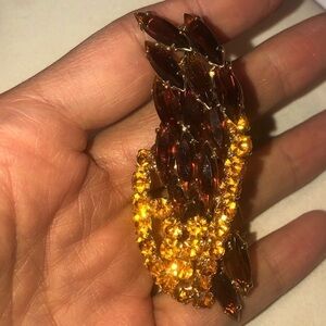 vtg Juliana DE Topaz Navette Orange Rivoli Gold Tone Brooch 2.8” Confirmed