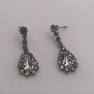 vtg Rhinestone Costume Stud Dangle Earrings 1.2”