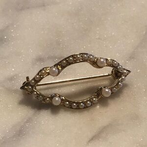 Vintage gold tone seed Pearl open style Brooch - elegant antique look. No missing pearls and no fading of metal colour