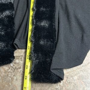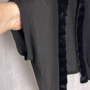 vtg Simply Irresistible,cardigan,women faux fur trim,black,sheer,batwing, L -XL