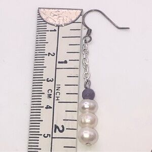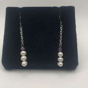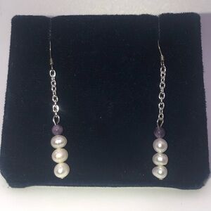 vtg Sterling Amethyst & Freshwater Pearl Chain Dangle Earrings 2”