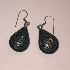 Super cute vintage sterling silver floral enamel cloisonné enamel drop earrings w shepherds hook posts.