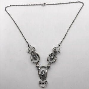 Vintage ‘ Titan ‘ sterling silver filigree and Marquis shape Alaska black diamond stone necklace.