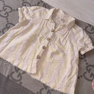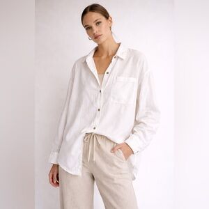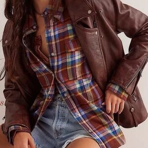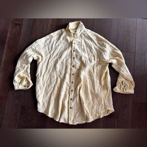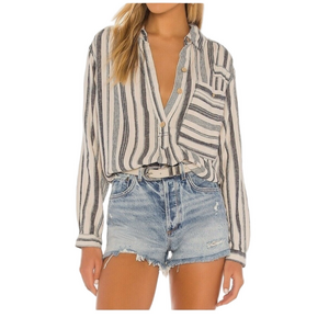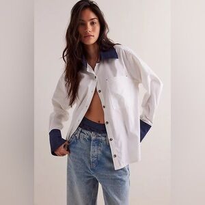 So cool denim buttondown top from our We The Free collection featuring exaggerated sleeves in a super relaxed silhouette.