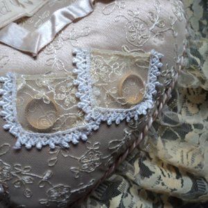 beautiful detailed pillow in ribbons, satin and lace