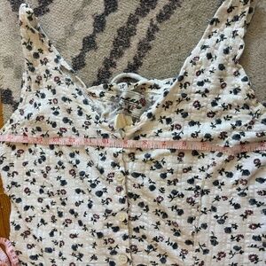 white mini 90s dress cotton like with little ditzy flowers and button up , lace up in the back