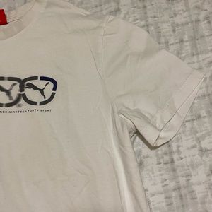 white puma short sleeve T-shirt. puma symbol in rings logo. Extra large mens.