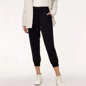 Sophisticated joggers — who knew? No actual jogging necessary. This version comes with a soft, wool knit waist and cuffs with drawstring closure. They're made with a smooth Japanese crepe that has a matte finish and drapes beautifully. 82% triacetate 18% polyester shell 50% wool 50% acrylic trim