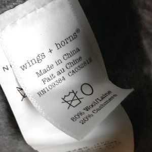 wings + horns Cashmere Wool Sweater, 80% Wool 20%Cashmere Heather Gray Warm Knit Sweater in size Large